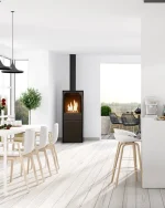 Scandi je bioetanolski kamin bez dimnjaka i ventila, s jednostavnom siluetom i samostojećim rješenjem, koji će zasigurno postati središnji element u jednostavnim i modernim interijerima. Kamin dolazi u crnoj praškastoj boji, a plamen je zaštićen kaljenim staklom. Ručno izrađeni drveni logovi pružaju realistično vizualno iskustvo, čineći ovaj skandinavski kamin još dekorativnijim. Plug&Play rješenje omogućuje intuitivnu i jednostavnu kontrolu kamina.